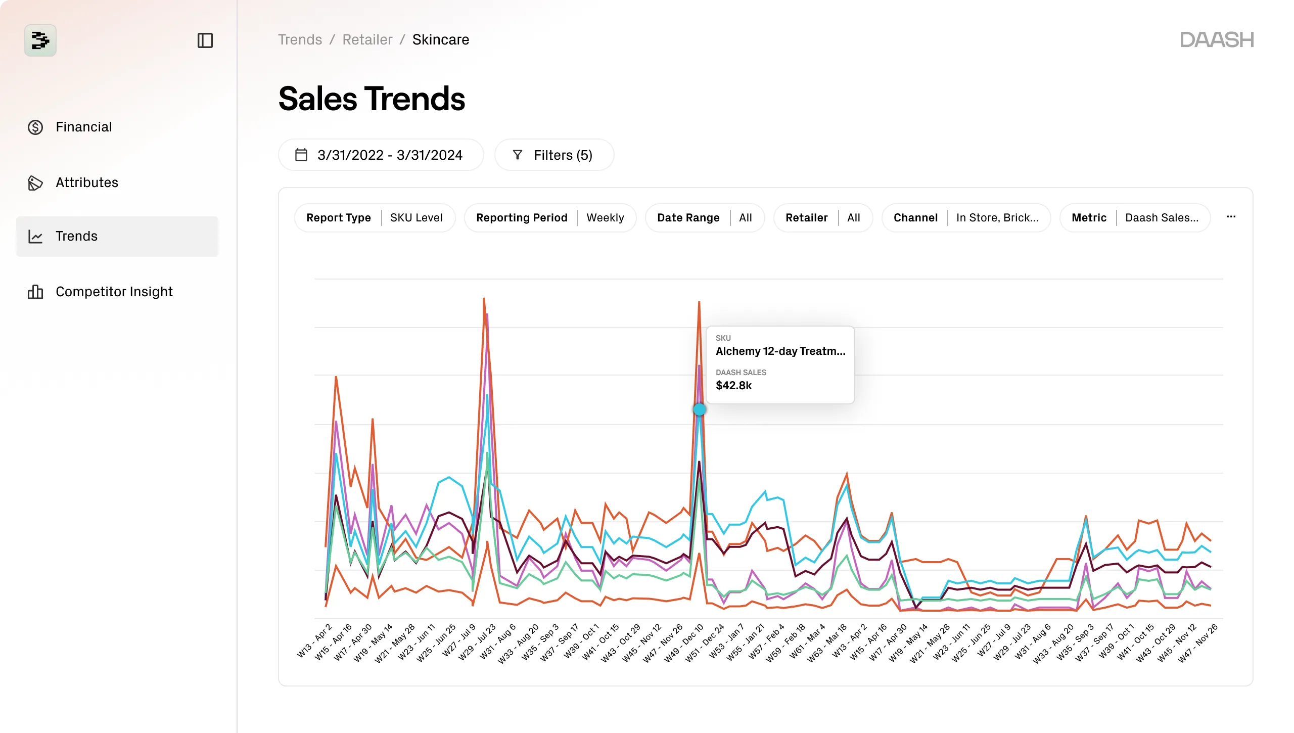 Daash uses proprietary data and AI to bring you weekly updates on channel-specific rank, sales, and attribute data... at a price you can afford.